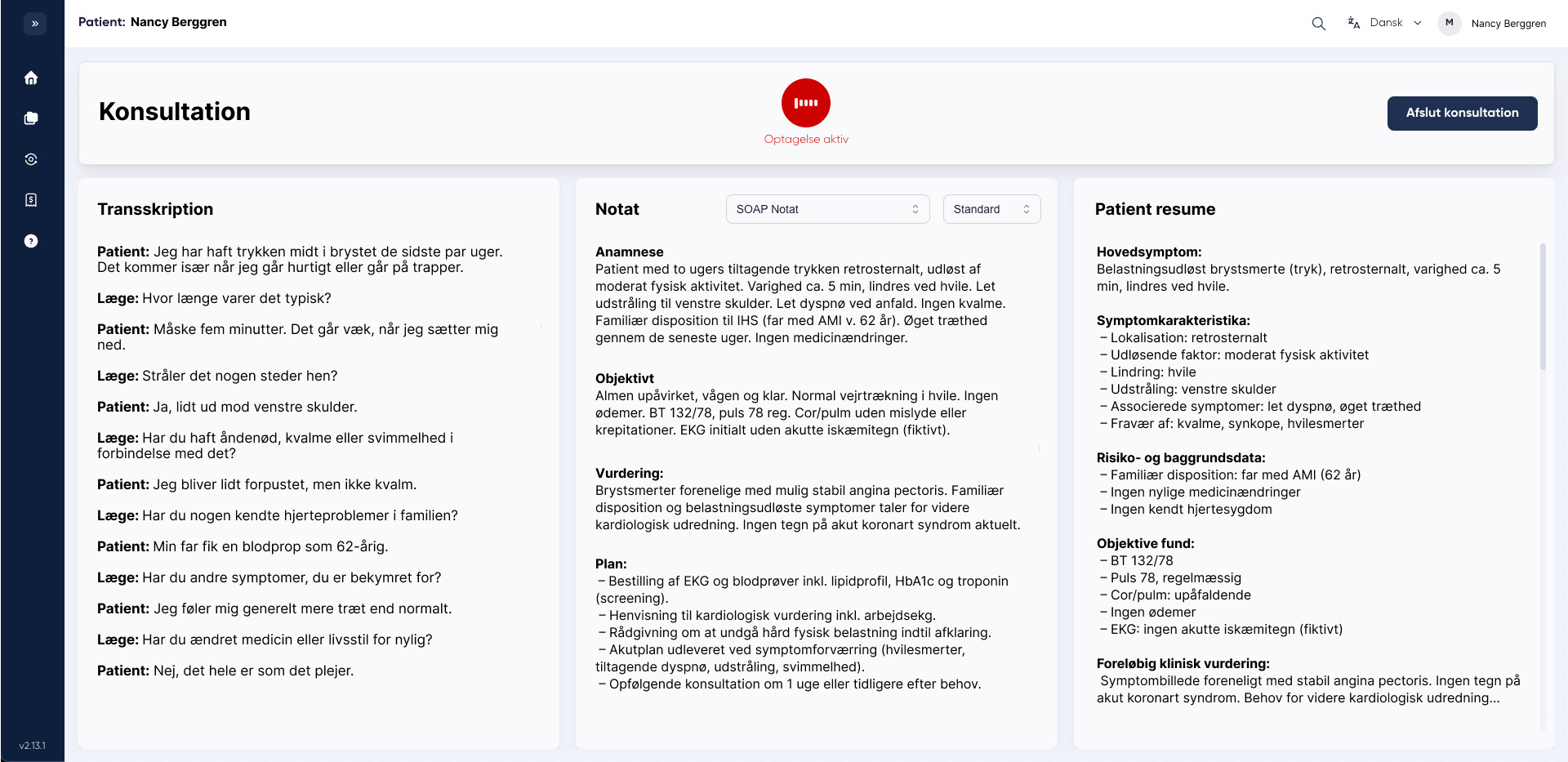 Optag konsultationen med 1 klik. Fokusér 100% på patienten.